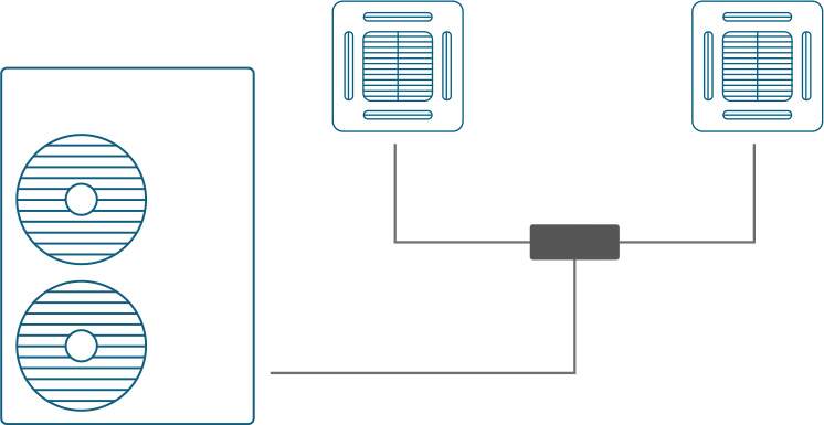 RAV TWIN Kit je řešení umožňující kombinaci dvou vnitřních jednotek a jedné společné venkovní jednotky. Tato konfigurace je ideální pro rozložení chladicího výkonu ve velkých místnostech nebo halách.